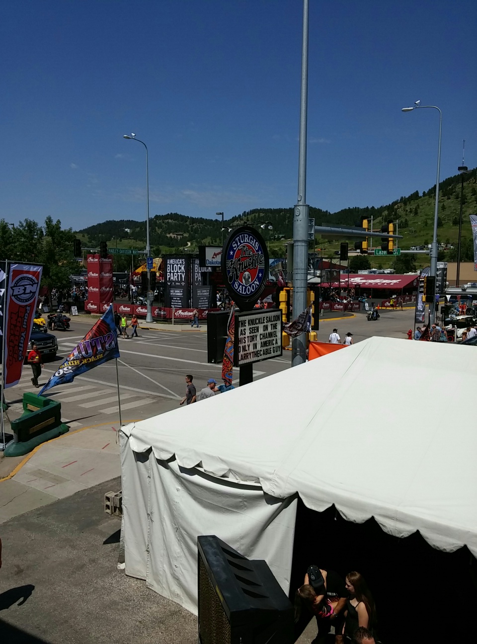Let me say this. After hitting rain across the Kansas/Nebraska border, hauling it didn’t seem so bad. After all, I’m delicate. I’ve ridden to the rally 8 years in a row with nothing to prove, and this “pulling a trailer” thing was a little foreign to me. Such things as wipers, a comfortable seat with armrests and climate control changed everything. If I didn’t know any better, I would have wondered why there were so many bikes on the road all heading in the same direction. But wait, I knew better. After a long day behind the wheel, camp was set up, the bike was unloaded and it was a quick ride into Sturgis for a bite to eat. Lot’s of people and somewhat tough to park, but not too bad. Saturday night was pretty uneventful and after all, I did have a long day driving. Can you tell I’m a little bitter about not riding this year? Yeah.