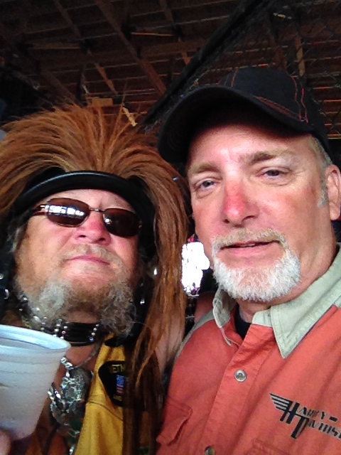 It always amazes me with the plethora of people, that you will even see someone you know but it never fails. Years ago we met a guy that goes by the name Buffalo Mike and he is what you might expect from a rally of this type. A helmet with horns and leather vest with no shirt on pretty much sums him up. Or so I thought. After seeing him at the rally several times over the years, Buffalo Mike is a great guy. I bumped into him again this year in front of the Full Throttle Saloon and we got caught up. He’s 74 years old if you’re wondering. Yes, it’s his thing to put his sweaty helmet on your head…