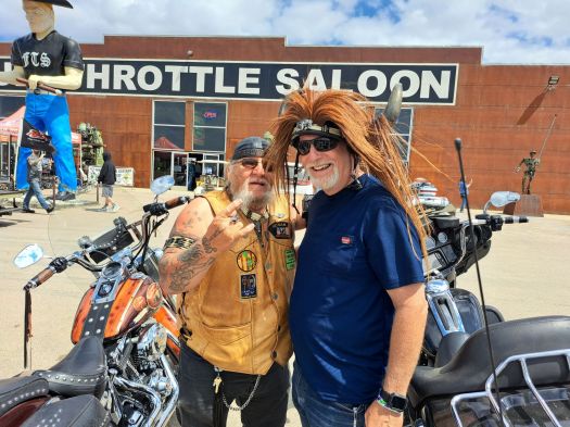 Buffalo Mike is a great guy. I bumped into him again this year in front of the Full Throttle Saloon and we got caught up. He’s 74 years old if you’re wondering. Yes, it’s his thing to put his sweaty helmet on your head…